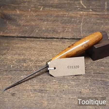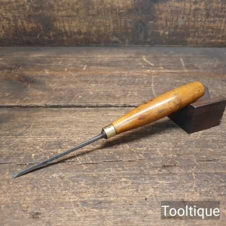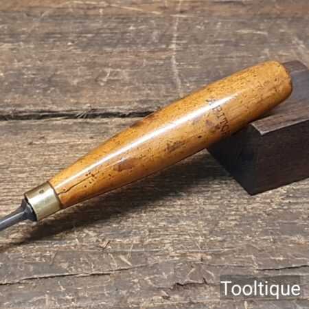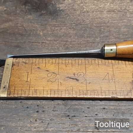 Vintage Ward & Payne 1/8” wide cast steel bevelled edge chisel with a boxwood handle, fully refurbished ready for use and in good used condition. Note: This small size is few and far between, handle crack has been resin treated and is solid.
