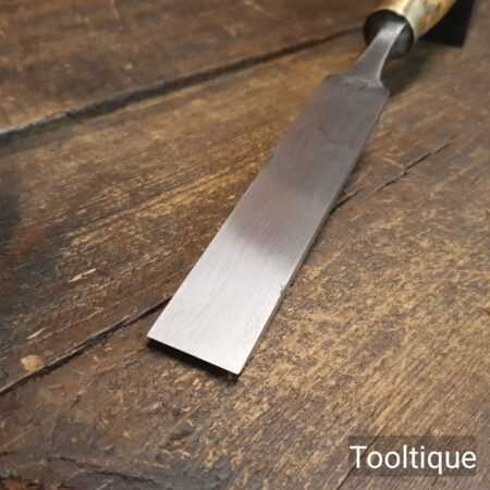 The chisel has been checked to ensure the tang is seated properly and the handle is solid and fit for use. All refurbished chisels are water cooled during the sharpening & flattening process to ensure the tempering is not affected.