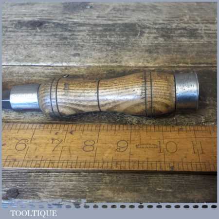 The chisel has been checked to ensure the tang is seated properly and the handle is solid and fit for use. All refurbished chisels are water cooled during the sharpening process to ensure the tempering is not affected. These old cast steel chisels are hand forged and far superior in quality because of the high carbon steel that was used which produces a keener edge, this was also generally used throughout the full length.