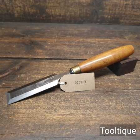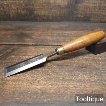 The chisel has been checked to ensure the tang is seated properly and the handle is solid and fit for use. All refurbished chisels are water cooled during the sharpening & flattening process to ensure the tempering is not affected