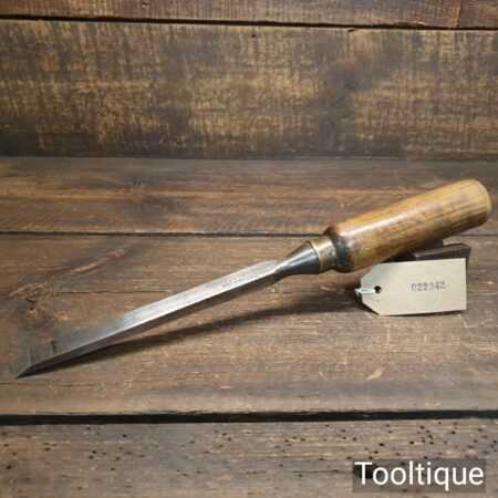The chisel has been checked to ensure the tang is seated properly and the handle is solid and fit for use. All refurbished chisels are water cooled during the flattening & sharpening process to ensure the tempering is not affected.