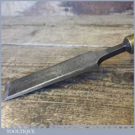 The chisel has been checked to ensure the tang is seated properly and the handle is solid and fit for use. All refurbished chisels are water cooled during the sharpening process to ensure the tempering is not affected. These old cast steel chisels are hand forged and far superior in quality because of the high carbon steel that was used which produces a keener edge, this was also generally used throughout the full length.