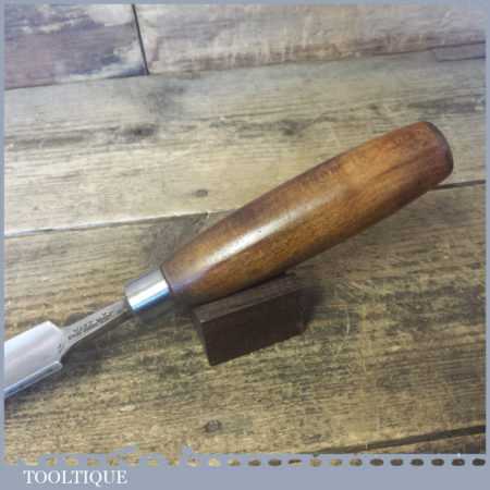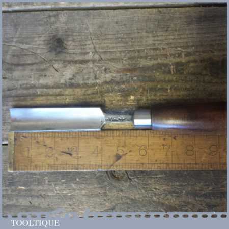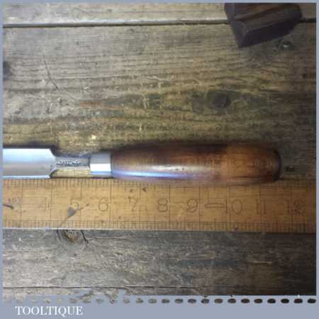 The chisel has been checked to ensure the tang is seated properly and the handle is solid and fit for use. All refurbished chisels are water cooled during the sharpening process to ensure the tempering is not affected. These old cast steel chisels are hand forged and far superior in quality because of the high carbon steel that was used which produces a keener edge, this was also generally used throughout the full length.