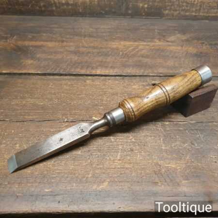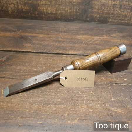 The chisel has been checked to ensure the tang is seated properly and the handle is solid and fit for use. All refurbished chisels are water cooled during the sharpening process to ensure the tempering is not affected.