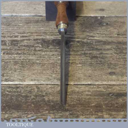The chisel has been checked to ensure the tang is seated properly and the handle is solid and fit for use. All refurbished chisels are water cooled during the sharpening process to ensure the tempering is not affected. These old cast steel chisels are hand forged and far superior in quality because of the high carbon steel that was used which produces a keener edge, this was also generally used throughout the full length.