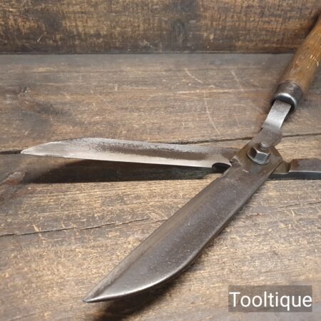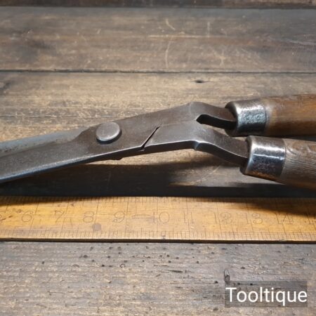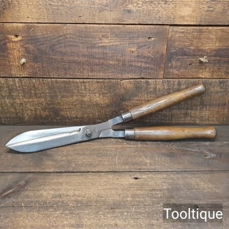 Vintage Ward & Payne Forged Cast Steel Hedging Shears with Ashwood Handles, fully refurbished and sharpened ready for use and in good used condition. Note: Modern/Cheaper shears are usually a simpler bent frame design but these heavier cast steel types are far superior in Quality. In our refurbishment we eliminate the wear and correct how these operate to ensure when they are used forthwith there is minimal wear created by use and so they cut like a good pair of scissors. Tip: Always Oil after use.