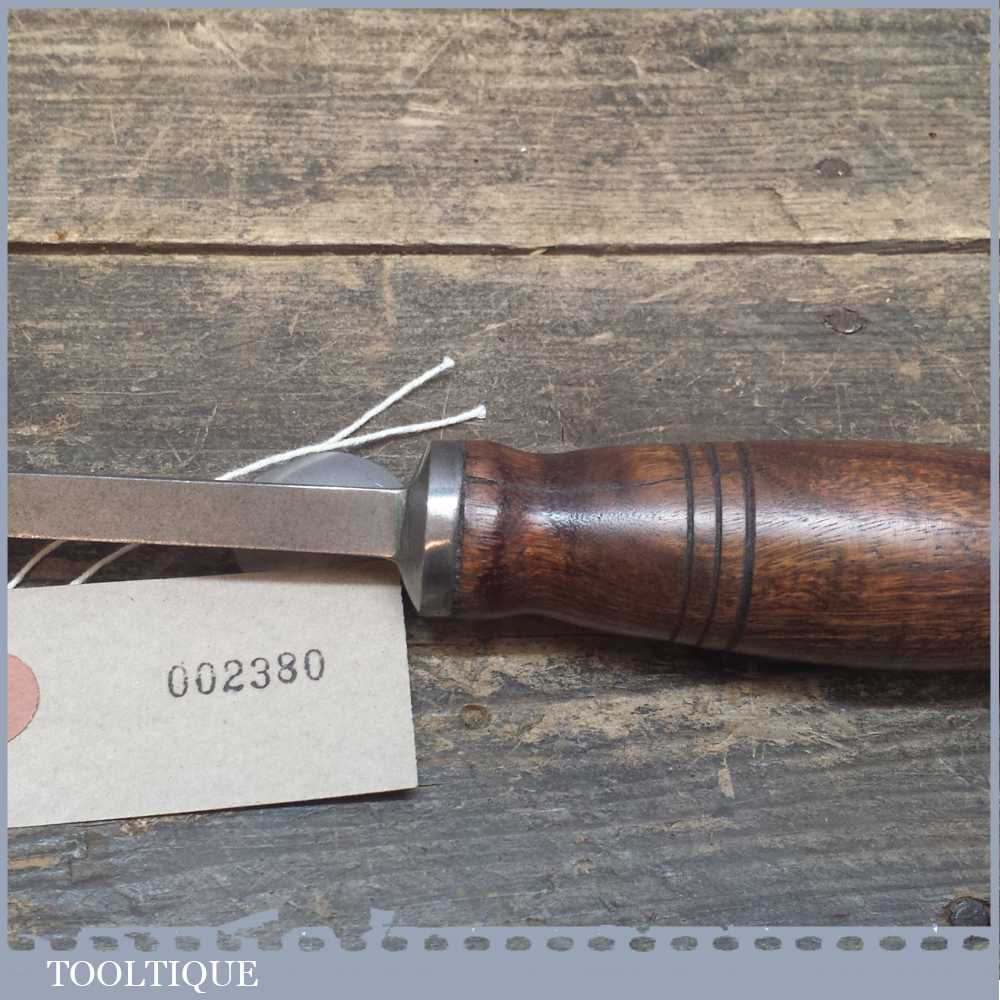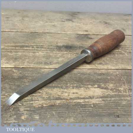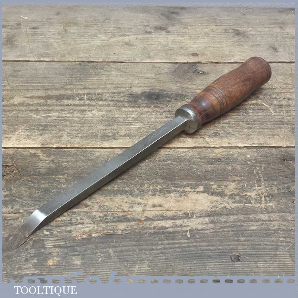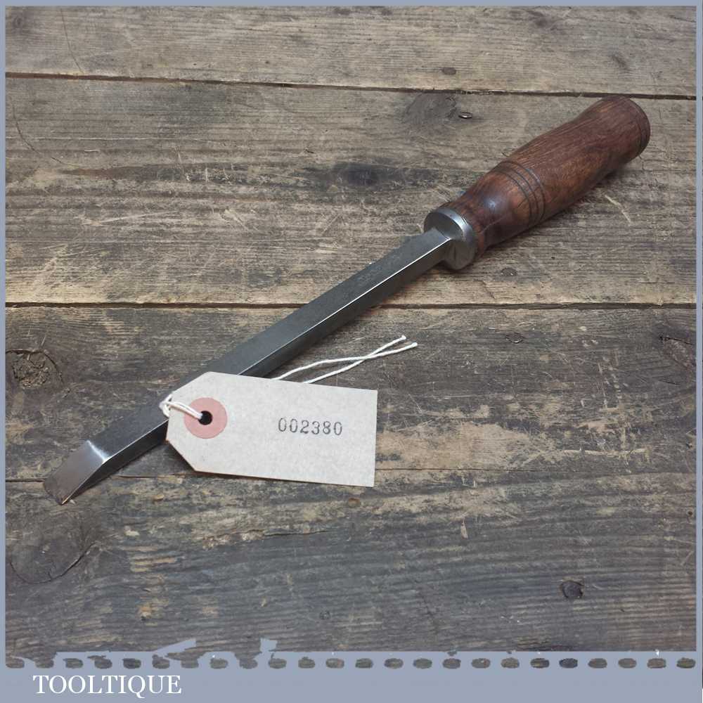 Vintage Ward & Payne of Sheffield 7/16” wide Mortice chisel and has been upgraded with the addition of a dense handmade hardwood handle with a beautiful grain which unfortunately cracked at the tang end when handling it, however it’s solid enough to use. It also has good length to the tang measuring 7” from tip to the handle. The chisel has been has been sharpened and honed ready for use.