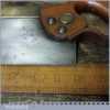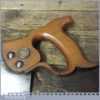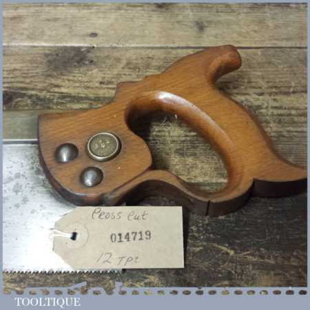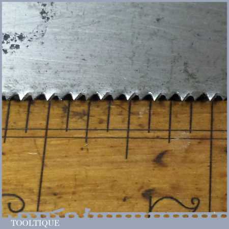 The saw has been thoroughly cleaned including under the handle, jointed, resharpened and set by hand so that all the hard work of getting an old vintage saw right has been undertaken. We do this so that the next sharpening is easier and no more than a quick freshen up would be required. Those who are familiar with sharpening will know this is no small job and requires skill, effort and time to achieve good results.