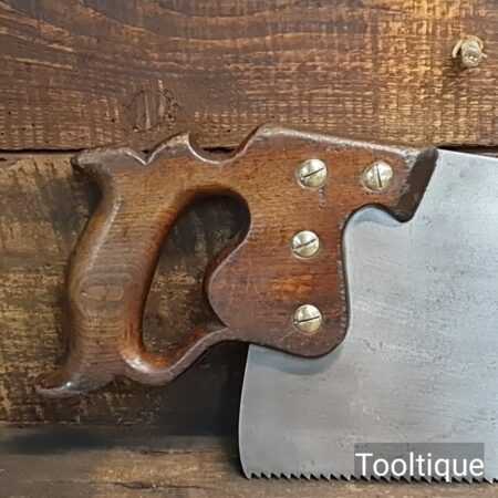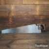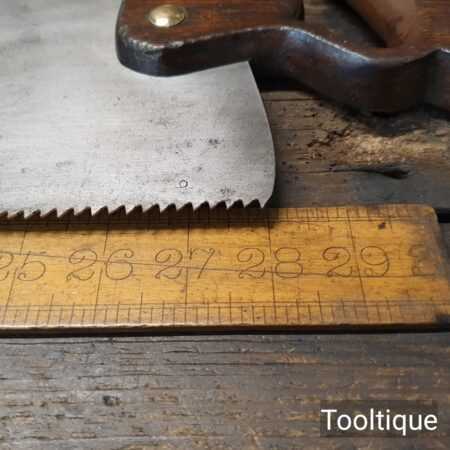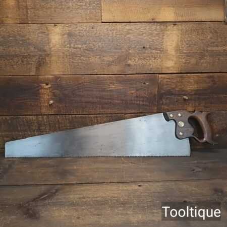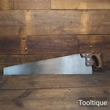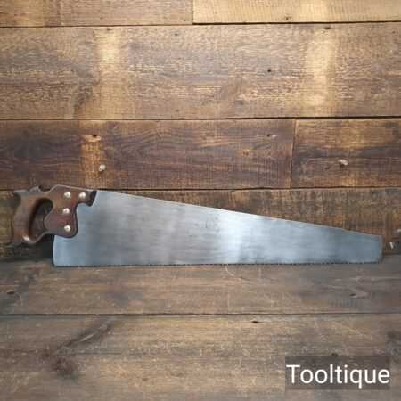 Vintage Warranted Superior 4 Tpi Rip Saw fully refurbished and sharpened ready for use and in good used condition. Note: Sharpened with a relaxed rake at the toe for an easier start which also to reduces risk of catching at the tip, becoming progressively more aggressive towards the handle.