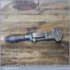 Vintage Warren automotive adjustable spanner wrench with wooden handle, in fair used condition.
