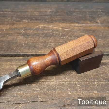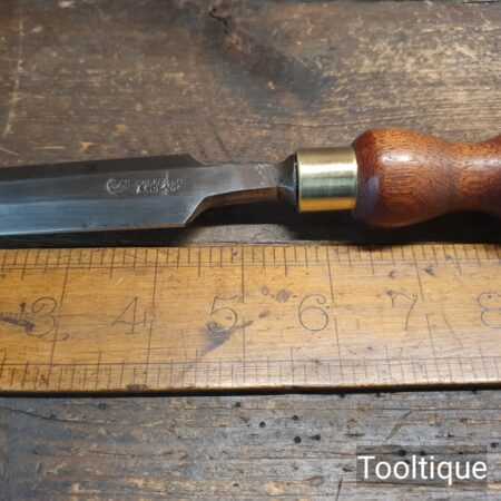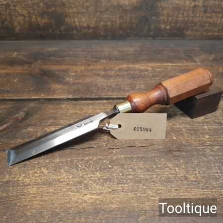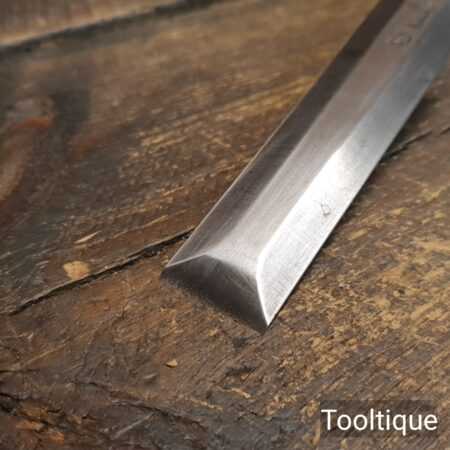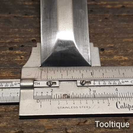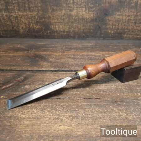 The chisel has been checked to ensure the tang is seated properly and the handle is solid and fit for use. All refurbished chisels are water cooled during the sharpening & flattening process to ensure the tempering is not affected