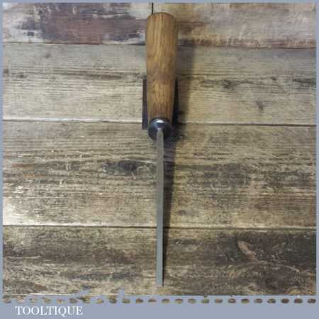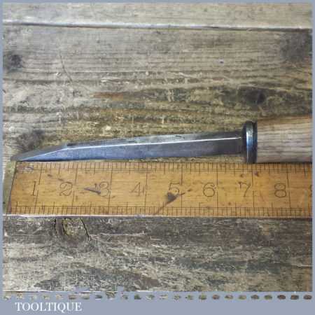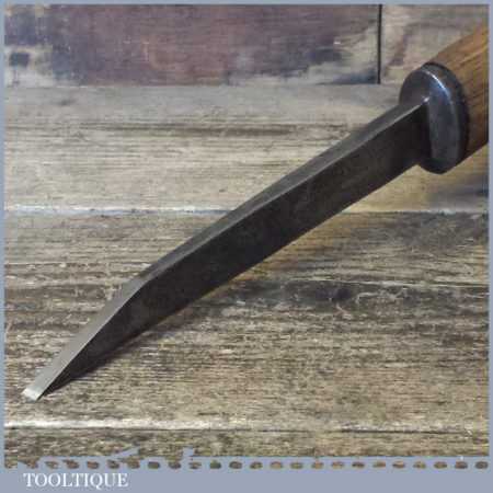 The chisel has been checked to ensure the tang is seated properly and the handle is solid and fit for use. All refurbished chisels are water cooled during the sharpening process to ensure the tempering is not affected. These old cast steel chisels are hand forged and far superior in quality because of the high carbon steel that was used which produces a keener edge, this was also generally used throughout the full length.