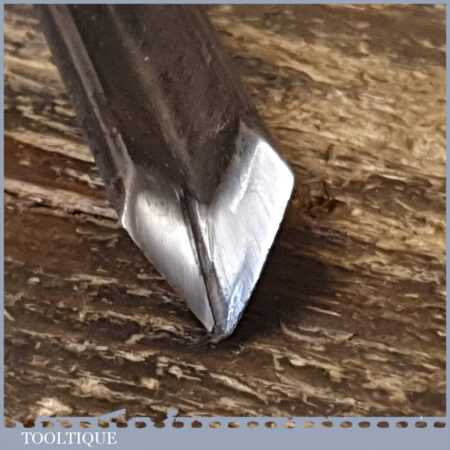 The chisel has been checked to ensure the tang is seated properly and the handle is solid and fit for use. All refurbished chisels are water cooled during the sharpening process to ensure the tempering is not affected.