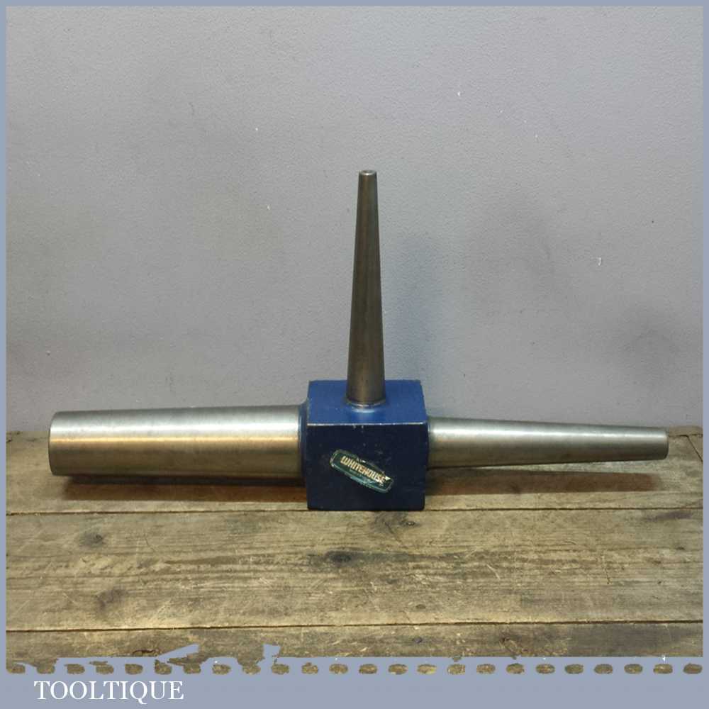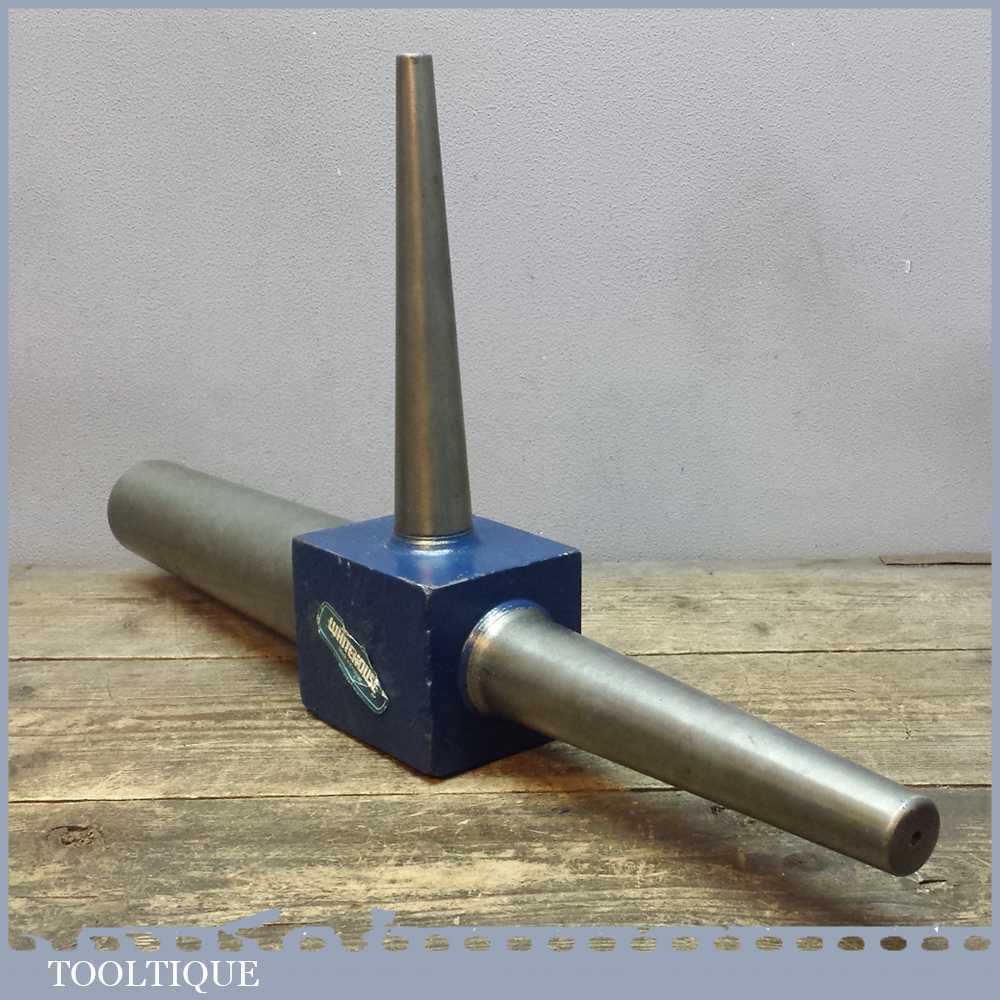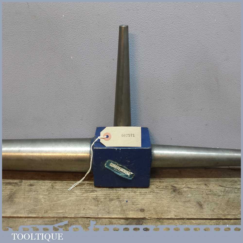 Large & Unusual Vintage Whitehouse Atlas works 3 pronged mandrel stake used by Tinsmiths etc in good original condition and seen very little use in its time. This is a very high quality specialised tool made by a renowned tool maker probably dating back to the 1960’s and would cost a fortune if still produced today, so don’t miss this rare opportunity as these are extremely scarce to find especially in this condition. The stake measures approx 20 inches long and radiate approx 10 ½” from the center. It is heavy duty and has a larger stem than stakes used for anvils and would require a swage block anvil to accommodate it.