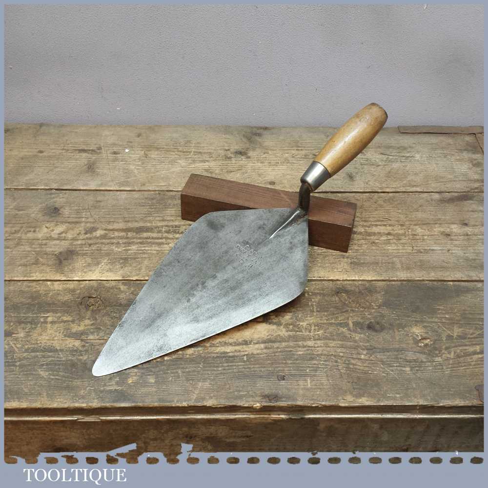 Vintage WHS Hunts & Sons Brades 11” bricklayers trowel in good used condition. These trowels have never been bettered and are the choice of true professionals