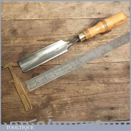 Vintage wide forged steel firmer chisel by Issac Greaves of Sheffield in good condition and has been sharpened & honed ready for use, this gouge chisel measures approx 1 9/16” (40mm) wide.