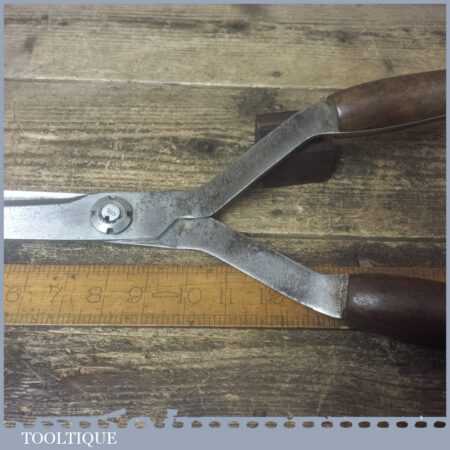Vintage Wilkinson Sword garden shears with beechwood handles in good used condition, fully refurbished sharpened and honed ready for use. Note: This has been properly sharpened where they will slice rather than hack and will cut paper like scissors.