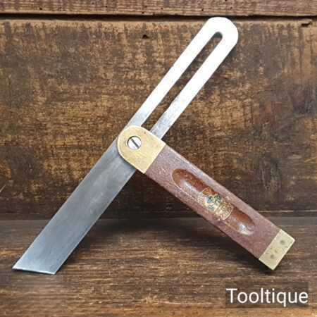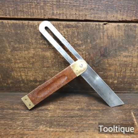 Vintage William Marples & Sons Ltd Mahogany and brass sliding bevel with 9” blade, in good used condition and ready for use. Note: The majority of its decal has remained.