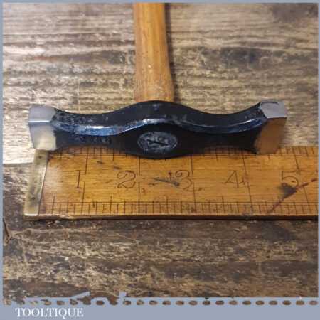 Vintage William Whitehouse and Co (Atlas Forge) panel beaters cross pein planishing hammer with hickory handle, in good used condition. Note: The faces have a smooth mirror finish.