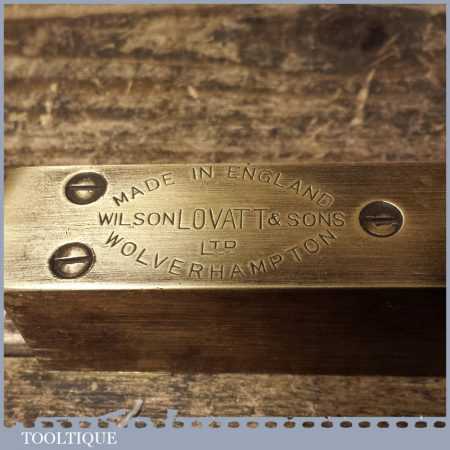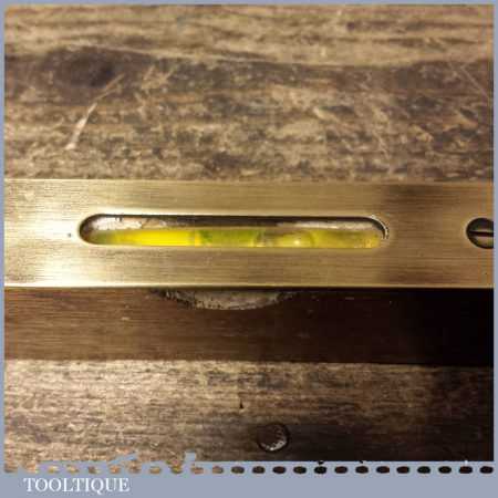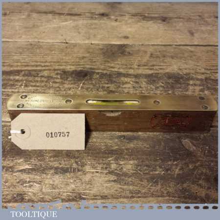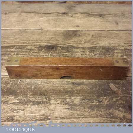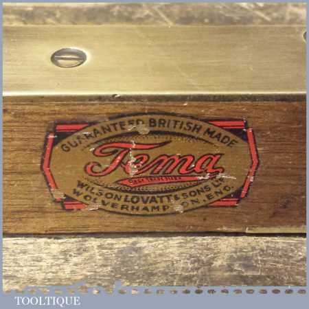 Vintage ‘Tema’ Wilson Lovatt & Sons 8” mahogany and brass spirit level in good used condition. Note: the level hasn’t been tested and may require resetting in putty if intended for use.