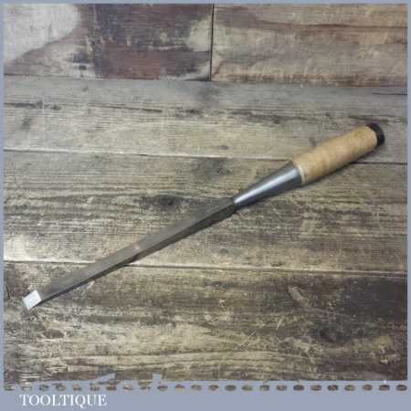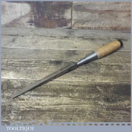 The chisel has been checked to ensure the tang is seated properly and the handle is solid and fit for use. All refurbished chisels are water cooled during the sharpening process to ensure the tempering is not affected. These old cast steel chisels are hand forged and far superior in quality because of the high carbon steel that was used which produces a keener edge, this was also generally used throughout the full length.