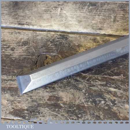The chisel has been checked to ensure the tang is seated properly and the handle is solid and fit for use. All refurbished chisels are water cooled during the sharpening process to ensure the tempering is not affected. These old cast steel chisels are hand forged and far superior in quality because of the high carbon steel that was used which produces a keener edge, this was also generally used throughout the full length.