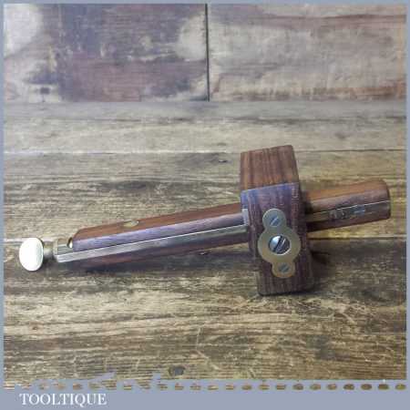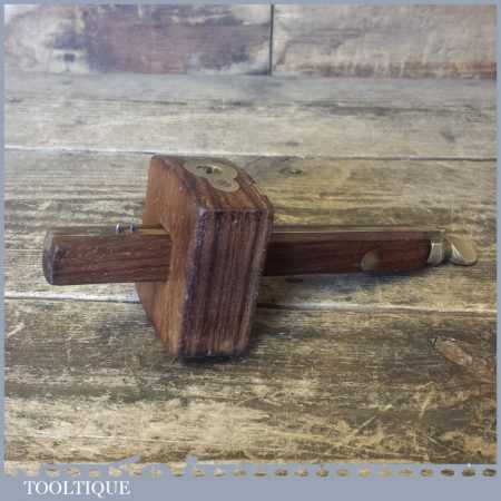 Vintage Wm. Marples rosewood and brass mortise gauge with smooth action and good pins, in good used condition.