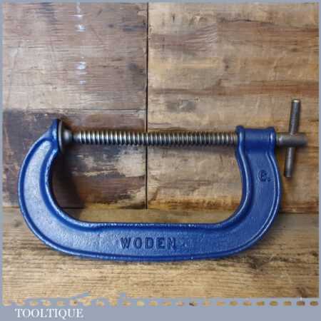 Vintage Woden 6” woodworking G clamp in good used condition and ready for use.