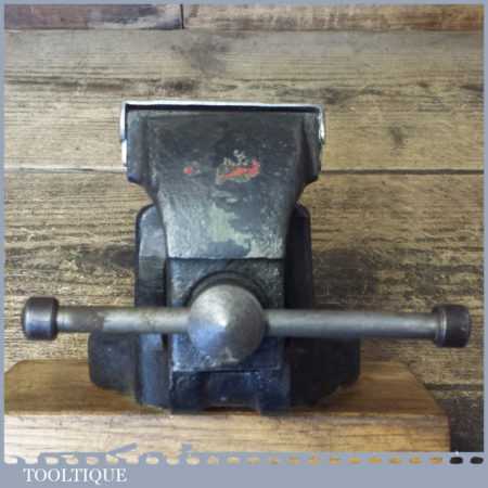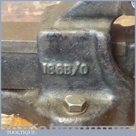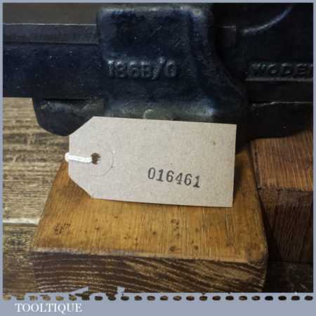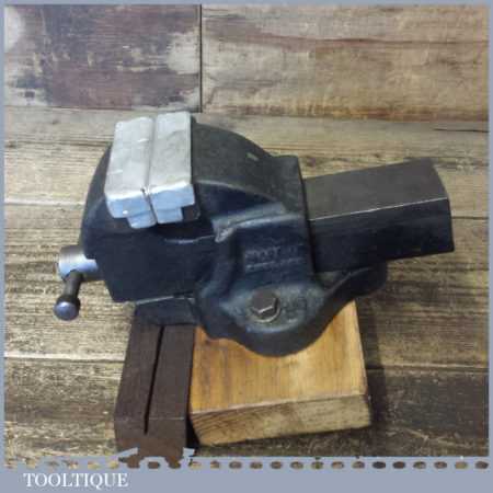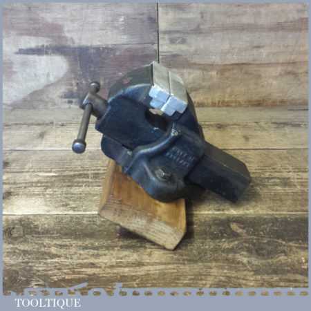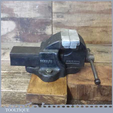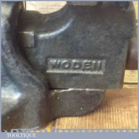 Vintage Woden No 186B/0 engineer’s cast steel bench vice with 2 ½” jaws and aluminium soft jaws fitted in good used condition.