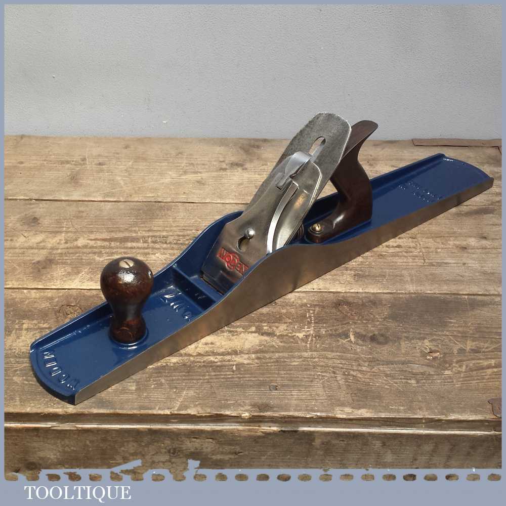 Vintage Woden No: 7 Jointer plane refurbished ready to use. Personally I feel these are of superior quality to Record especially when they have been lapped flat. I have replaced the original handles with fresh hardwood handles as the originals were damaged however it’s clear this plane saw little work in its time as it still retains a good length original Woden iron. SOLD