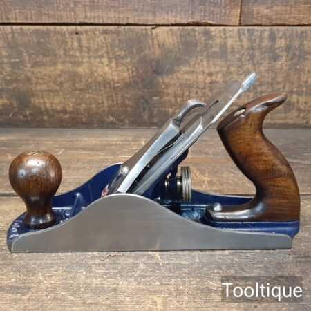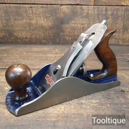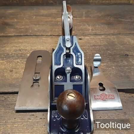 Vintage Woden Tools England No: W4 ½ Wide Bodied Smoothing Plane, fully refurbished ready for use and in good used condition. Note: Record 2 3/8” Cutter, minor very small nibble to throat, this won’t affect its use. When refurbishing planes, we do not merely clean them to make them look good, they are restored to a level that ensures this plane is actually ‘in plane to within 0.02mm’ sharpened, honed and all the components are thoroughly cleaned so that they move freely. Our planes are specifically reconditioned to satisfy professional tradesmen who will instantly know the difference between buying one of our planes over general other used ones.