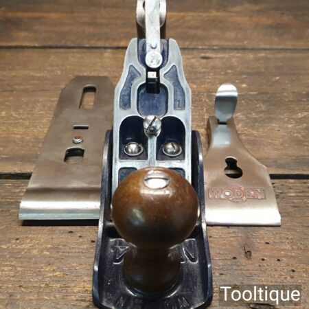 When refurbishing planes, we do not merely clean them to make them look good, they are restored to a level that ensures they are actually ‘in plane to 0.025mm’ sharpened, honed and all the components are thoroughly cleaned so that they move freely. Our planes are specifically reconditioned to satisfy professional tradesmen who will instantly know the difference between buying one of our planes over general other used ones.