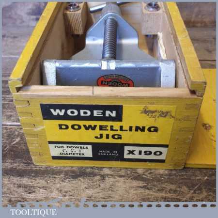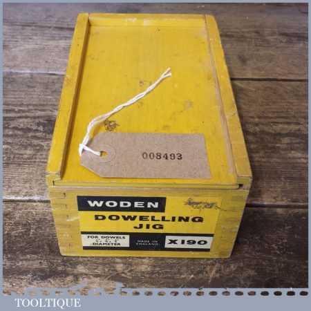 Vintage Woden X190 dowelling jig in its original wooden box and in good used condition.