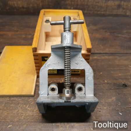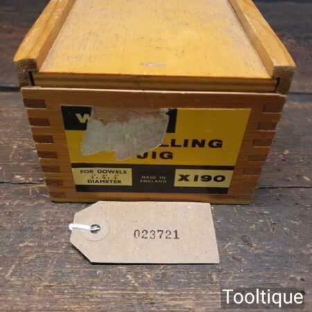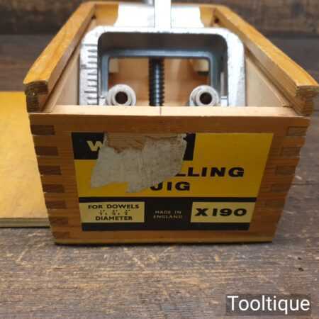 Vintage Woden X190 dowelling jig in its original wooden box and in good used condition.