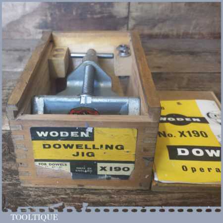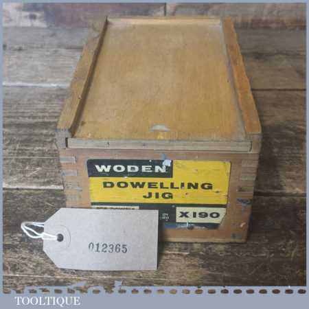 Vintage Woden X190 dowelling jig in its original wooden box and in good used condition.