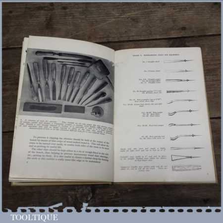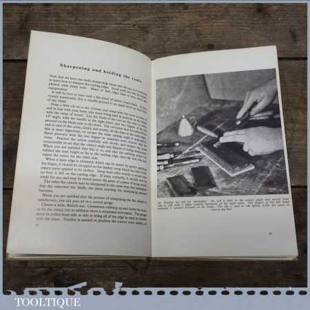 Vintage wood carving book that illustrates using and caring for Chisels etc, some staining to cover but the contents are good.