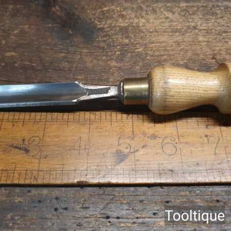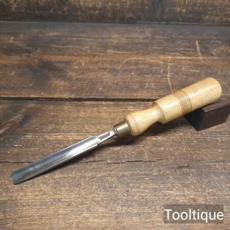 Vintage Woodcock 7/16” gouge chisel with an Ash handle, sharpened ready for use and in good used condition.