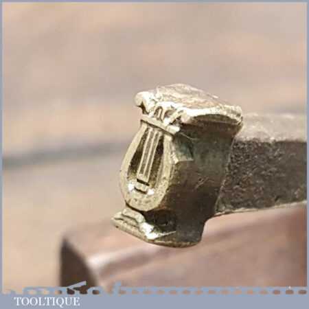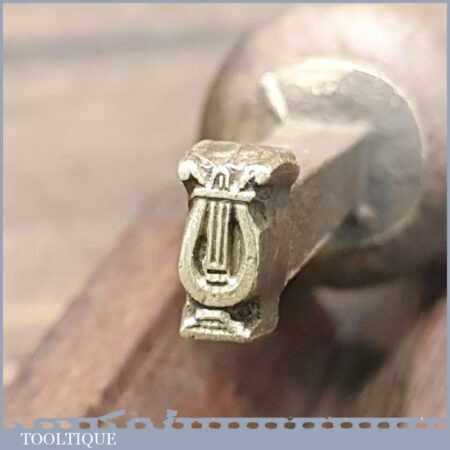 Vintage wooden handled bookbinding brass Harp shaped stamp in good used condition.