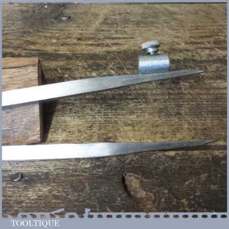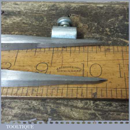 Vintage Woodturners 10 ½” square leg steel spring dividers with pencil attachment, in good used condition.