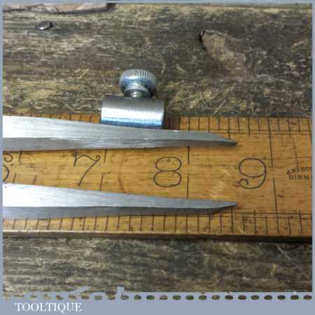 Vintage Woodturners 8 ½” square leg steel spring dividers with pencil attachment, in good used condition