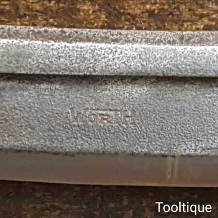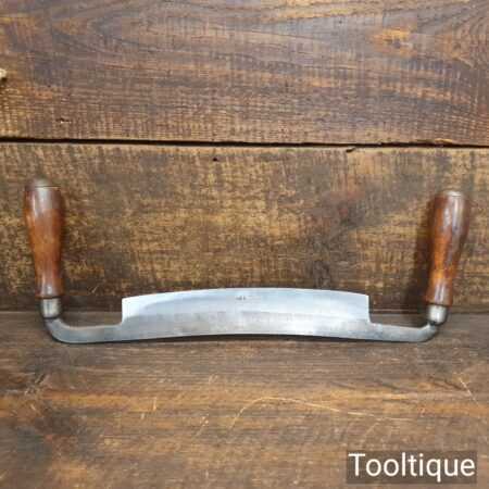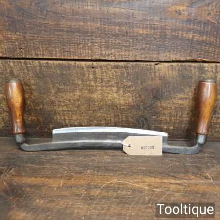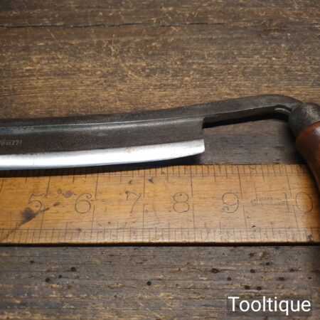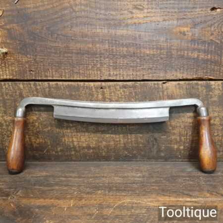 Vintage Worth carpenter’s curved drawknife with a 10 ½” cutting edge and beechwood handles, sharpened and honed ready for use and in good used condition. this has seen little use and has lost its original makers decal from handle. Note: No pitting along the cutting edge