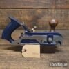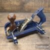 Vintage WS Birmingham A78 Twin Arm Rabbet Fillister Plane, fully refurbished ready for use and in good used condition. When refurbishing planes, we do not merely clean them to make them look good, they are restored to a level that ensures this plane is actually ‘in plane to within 0.01mm’ sharpened, honed and all the components are thoroughly cleaned so that they move freely. Our planes are specifically reconditioned to satisfy professional tradesmen who will instantly know the difference between buying one of our planes over general other used ones.