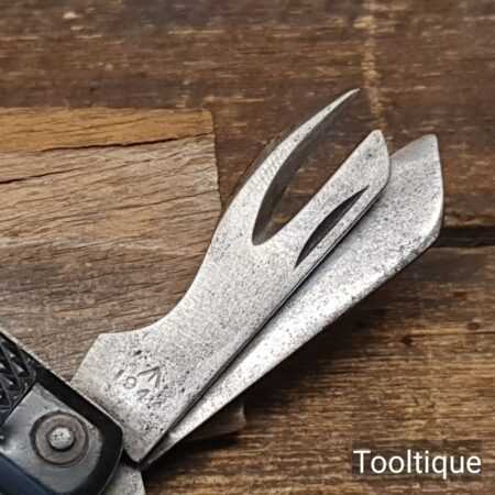 Vintage WW2 1944 pocket multitool with 3 attachments and stamped with Broad arrow in good original condition.