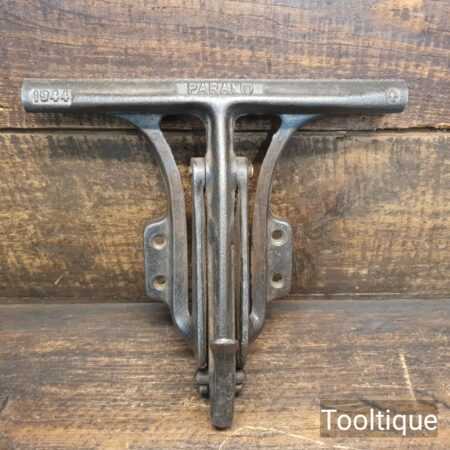 Vintage WW2 Paramo 1944 saw sharpening vice with 9 ¾” wide jaws, in good used condition. Also cast with a broad arrow.