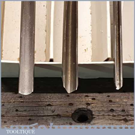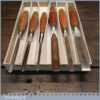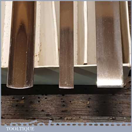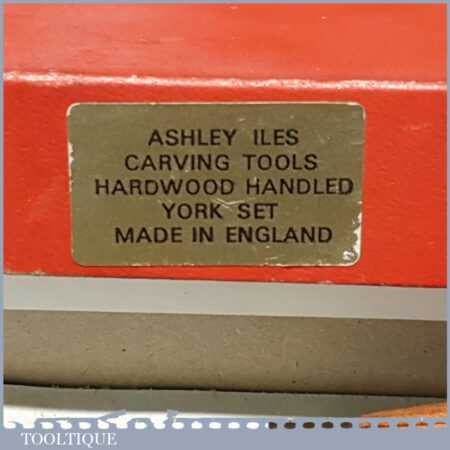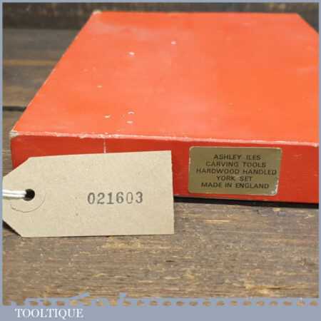 Vintage York boxed set of Ashley Iles carving chisels that have seen very little use. These were a premium set and had upgraded handles, sizes and shapes.