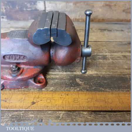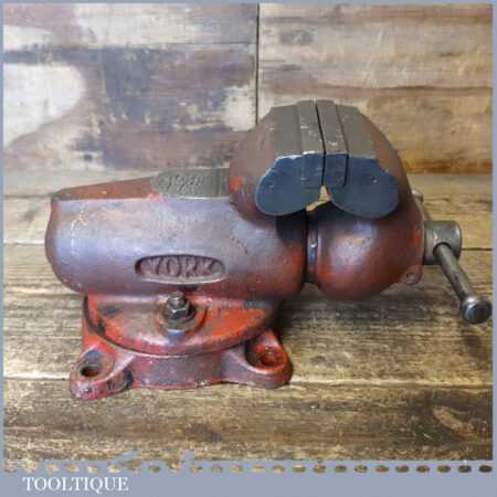 Vintage York engineer’s swivelling bullet style bench vice with 3” Jaws, in good used condition