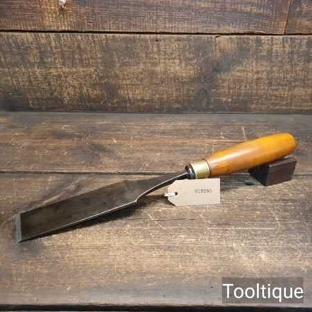 The chisel has been checked to ensure the tang is seated properly and the handle is solid and fit for use. All refurbished chisels are water cooled during the sharpening & flattening process to ensure the tempering is not affected