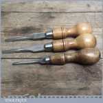 3 Vintage Marples Bevelled Edge Chisels with London Pattern Boxwood Handles