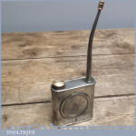 This is one of our recently sold items. VINTAGE AUSTIN SHAPE BRASS TIN METAL OIL CAN – OLD OILER Small Square shaped Vintage oil can with brass cap and nib – This old oiler is in good condition for its age and has no makers marks.