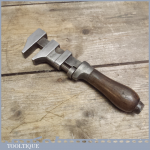 This is one of our recently sold items. Antique vintage monkey wrench wood handle 8 1/2″ long Adjustable Spanner Good Vintage Adjustable Monkey Wrench with wooden in working order. Opens and shuts with smooth action.